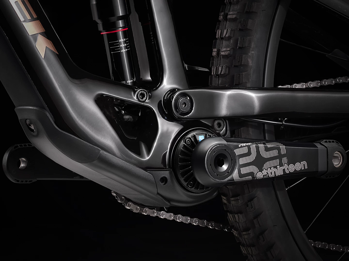 Um quadro em carbono OCLV para mountain bikes equipado com uma bateria de 360Wh totalmente encapsulada e uma transmissão TQ com conjunto de coroa e pinhão harmônico com uma porta de carregamento inteligente, display LED integrado e controle remoto discreto no guidão. Além disso, um garfo RockShox Lyrik Select+ de 150 mm com mola DebonAir e amortecedor Charger 2.1 RC e suspensão traseira RockShox Super Deluxe Select+ de 140 mm. Tudo acompnhado de uma trocas de marchas e uma modulação precisas de um sistema de transmissão Shimano XT.