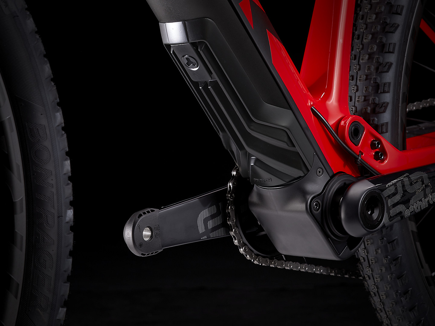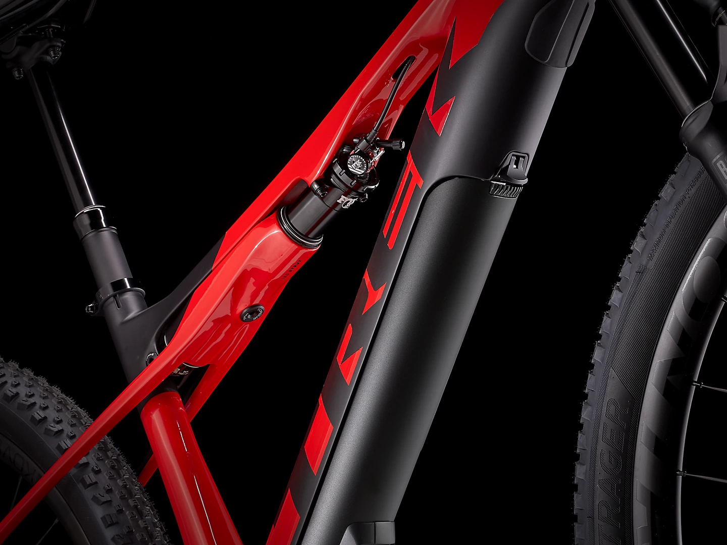 Um quadro em carbono OCLV para mountain bikes com 60 mm de curso, um garfo RockShox SID Select+ de 120mm e um amortecedor IsoStrut da Trek. Um motor Fazua Ride com uma bateria de 250Wh que pode assistir a até 32 km/h quando ligado e que oferece arrasto zero quando está desligado. Uma transmissão Shimano XT, canote retrátil Linha Elite Bontrager e rodas em carbono Kovee Pro 30 com cubo traseiro Rapid Drive de 108 dentes para acoplamento rápido.