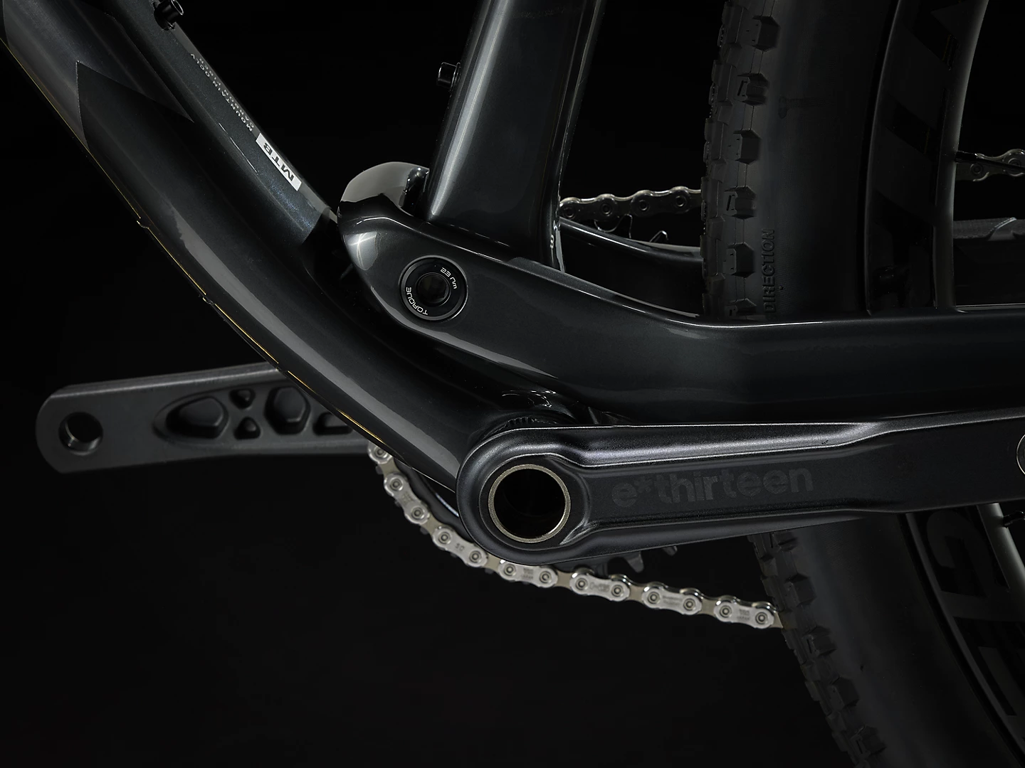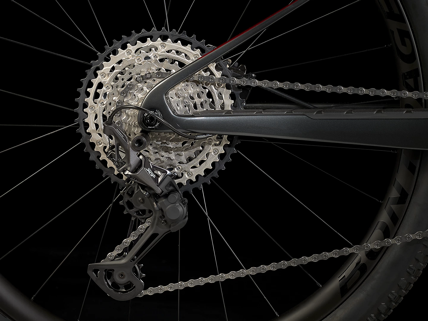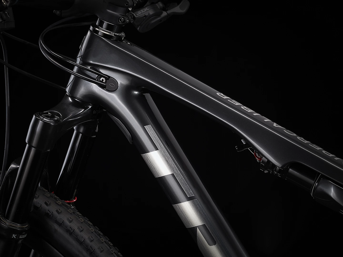 Um quadro totalmente em carbono OCLV para mountain bikes ultra leve com curso de 60 mm, um garfo RockShox Reba RL de 100 mm e o exclusivo e leve amortecedor IsoStrut FOX Performance da Trek, projetado especificamente para a Supercaliber. Adicionalmente, uma transmissão Shimano SLX / XT 1×12 e rodas de carbono Kovee Elite 30 Bontrager com um cubo traseiro de 108 dentes para engate instantâneo.