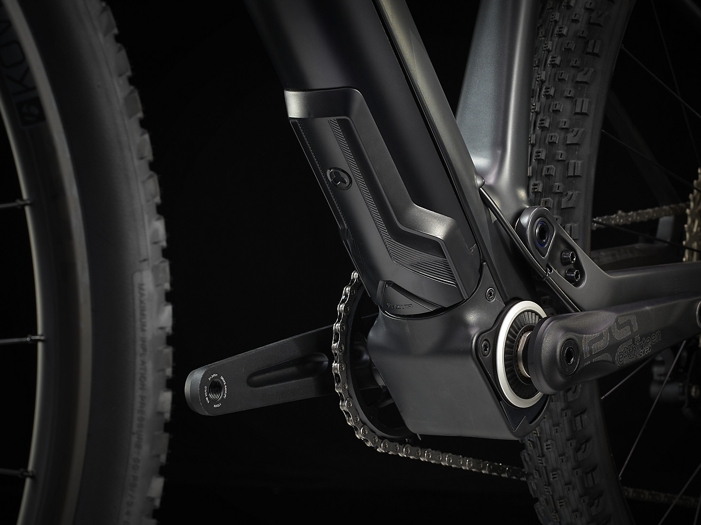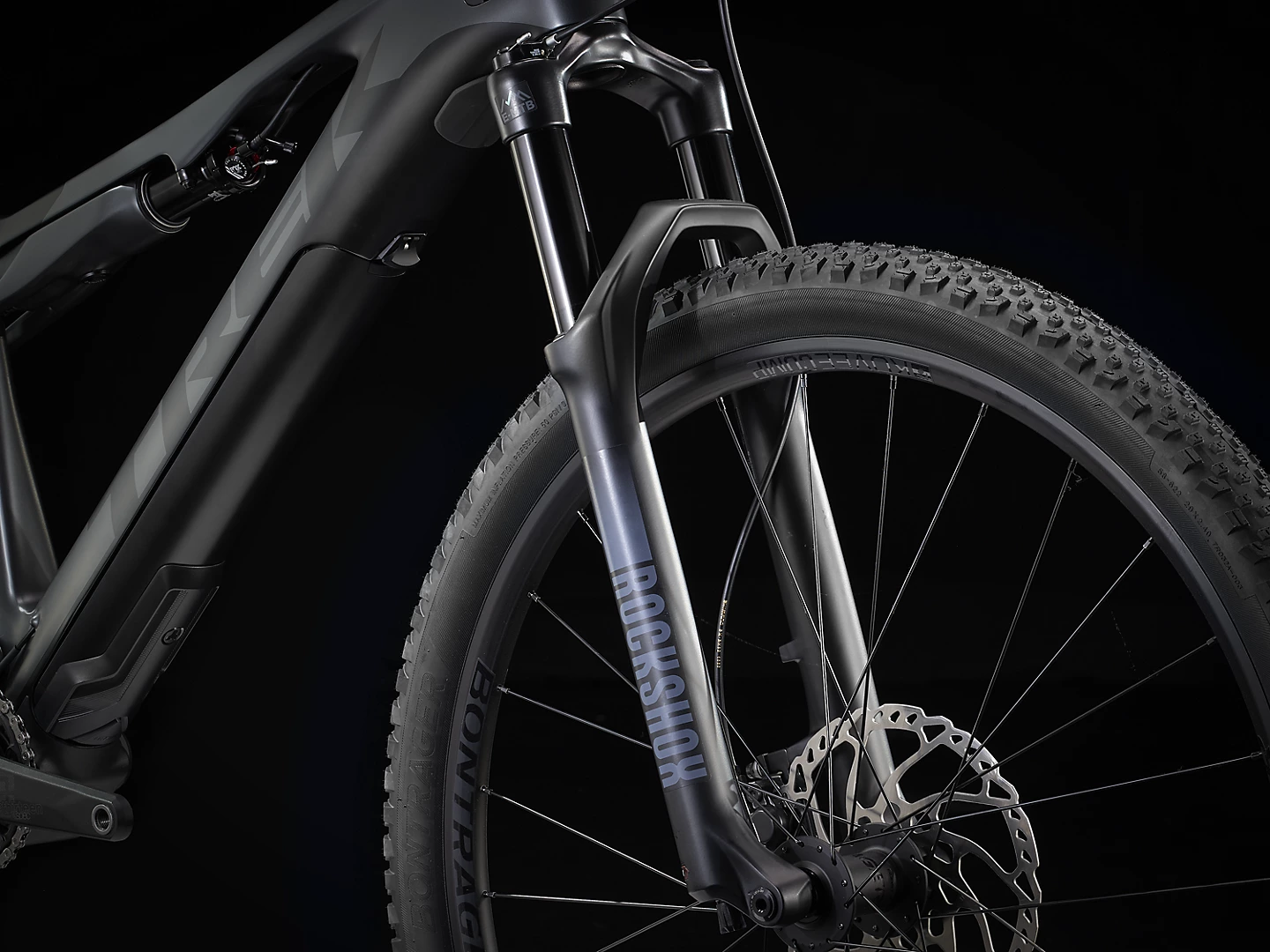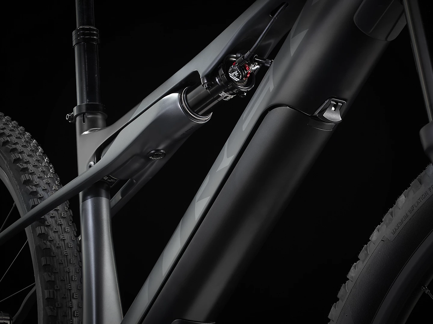 Um quadro em carbono OCLV para mountain bikes com curso de 60 mm, um garfo RockShox Gold RL de 120 mm e o amortecedor IsoStrut FOX Performance da Trek. Um sistema de acionamento Fazua Ride Trail 50 que pode dar assistência até 32 km/h quando ligado e que oferece zero arrasto aerodinâmico quando desligado, além de uma transmissão Shimano Deore de 12 velocidades, canote retrátil para uma postura mais agressiva nas descidas e rodas Kovee Comp 23 Bontrager.